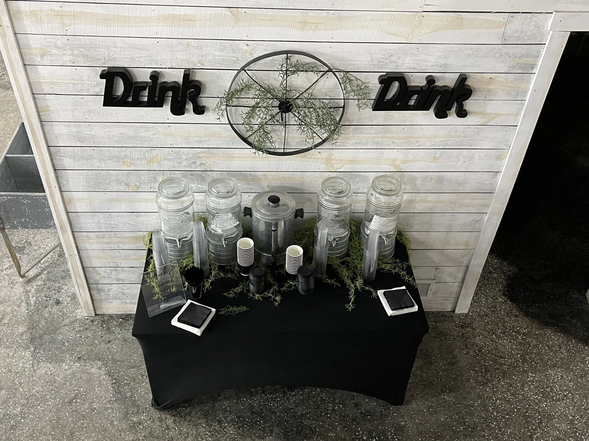 The barn will be decorated with stylish decor throughout, with numerous decorations (centerpieces, table runners, artificial flowers & greenery, vases, candles, signs and more) available for your use. Clients and their vendors may supplement the decor to accommodate their colors and taste